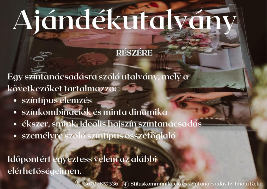 Akkor itt a lehetőség az egész évben beváltható Ajándékutalványt választani, komplett szín-és stílustanácsadásra!